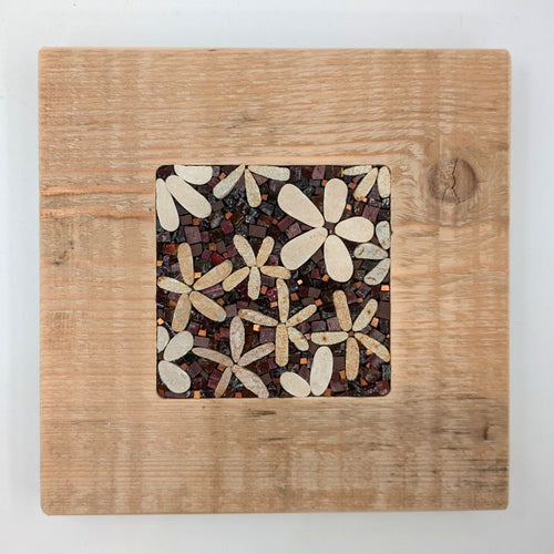 Le basi in legno sono scelte e ricavate a partire da legno di riciclo, soprattutto vecchi mobili. Spesso portano i segni della loro storia, e i mosaici in questo caso li assecondano e accentuano; altre volte invece le basi restano più neutre, o vengono dipinte, per far risaltare textures musive e soggetti particolari.