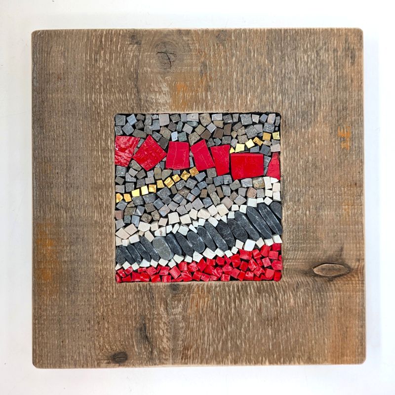 Quadro in mosaico con cornice in legno di riciclo.