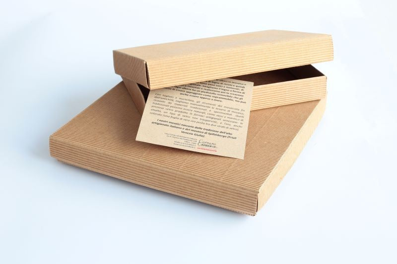 Es handelt sich um ein handgefertigtes Kunstobjekt und seine Unregelmäßigkeit garantiert die Authentizität und Einzigartigkeit des Produkts. Am besten gehen Sie vorsichtig damit um und berühren es, da die Kanten der Fliesen, insbesondere bei Glasfliesen und bei moderneren Verfahren, scharf sein können.