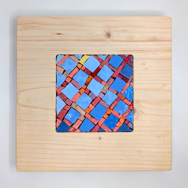 Quadro in mosaico con cornice in legno di riciclo.