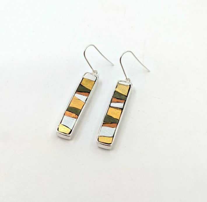 Basis aus 800/1000 Silber. Venezianisches Goldmosaik (echtes Blattgold in venezianischem Glas) grün, säuregrün, rot. Haken aus 925er Silber.